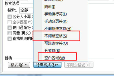 • 选择【特殊格式】菜单中的【空白区域】或【不间断空格】标识符