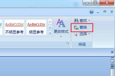 2、在功能选项卡中选择【开始】-【替换】(或直接使用Ctrl+H组合键)调出替换对话框